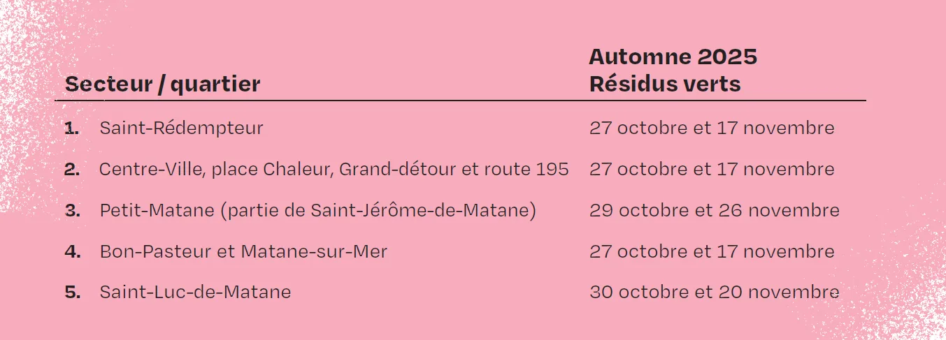 Dès le 27 octobre la collecte de résidus verts commence. Elle se fera en cinq étapes, selon les secteurs de la ville. Découvrez les détails ci-dessous.