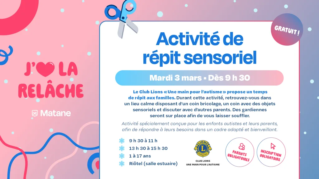 Activité de répit sensoriel. Le Club Lions « Une main pour l’autisme » propose un temps de répit aux familles.