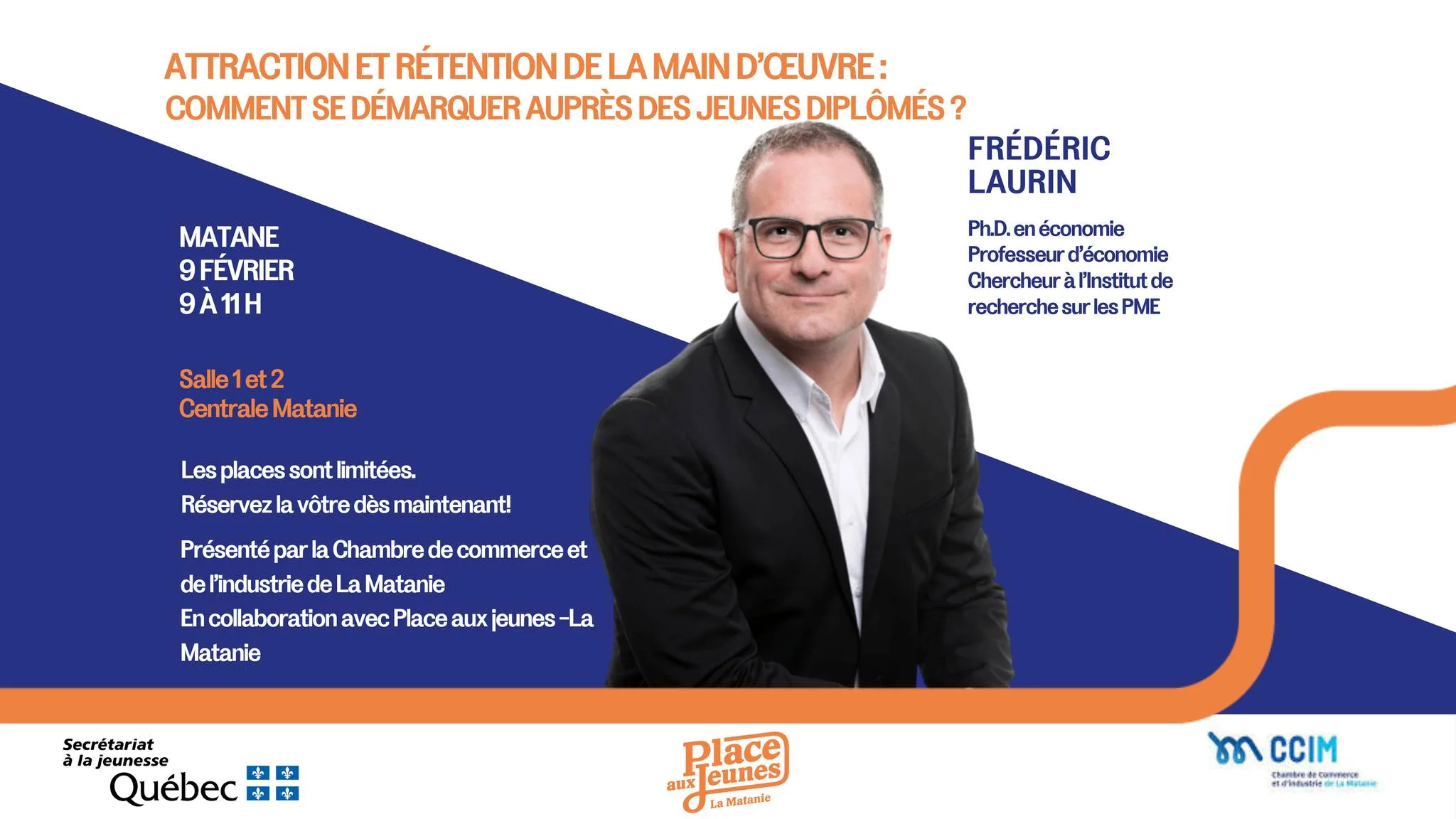 Places limitées, réserver auprès de la Chambre de Commerce et d’industrie de La Matanie.