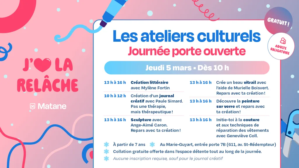 Les ateliers culturels de la relâche – Journée porte ouverte